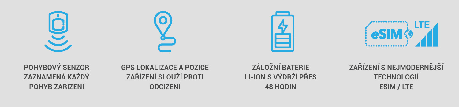 Sledování zařízení pomocí GPS funkce, POHYBOVÉHO SENZORU a záložního akumulátoru